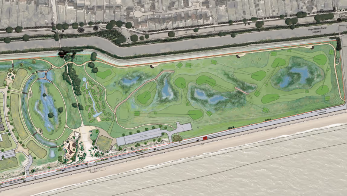The proposals offer the opportunity to renew the seafront of Hythe at no cost to Folkestone & Hythe District Council. It would reactivate Princes Parade as a ‘Promenade’ and destination for visitors and residents by improving public access, introducing pedestrian safety measures and crossings and providing a remodelled and upgraded golf course alongside an adventure golf course that has been designed to appeal to a wide cross-section of the community.